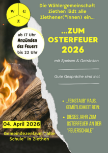 Am 4. April 2026 lädt die Wählervereinigung Ziethen wieder zum traditionellen Osterfeuer ein.